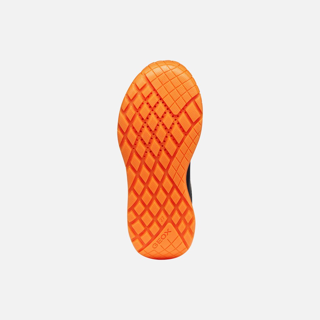 Dětské tenisky Geox Rann-e v tmavě modrém provedení zaujmou výraznou světle modrou linií na boku a oranžovými detaily na špičce a patě. Praktické zapínání na dva suché zipy zajišťuje snadné obouvání a bezpečné držení na noze.