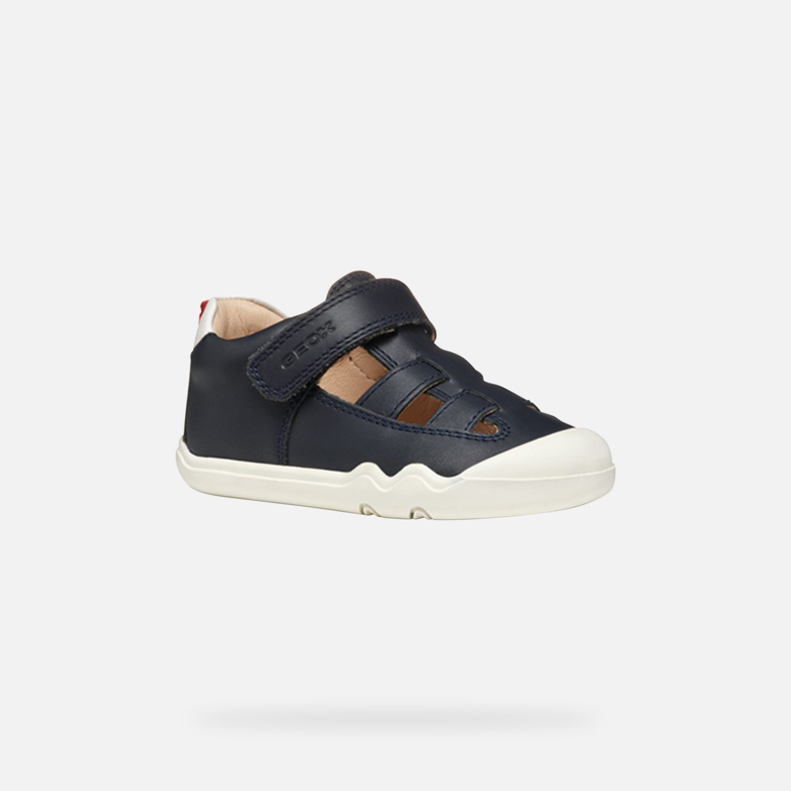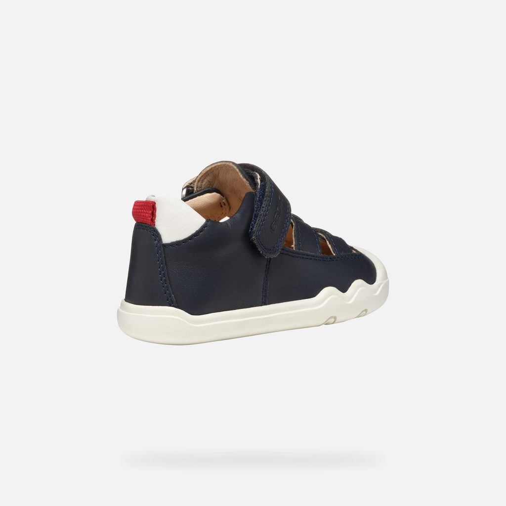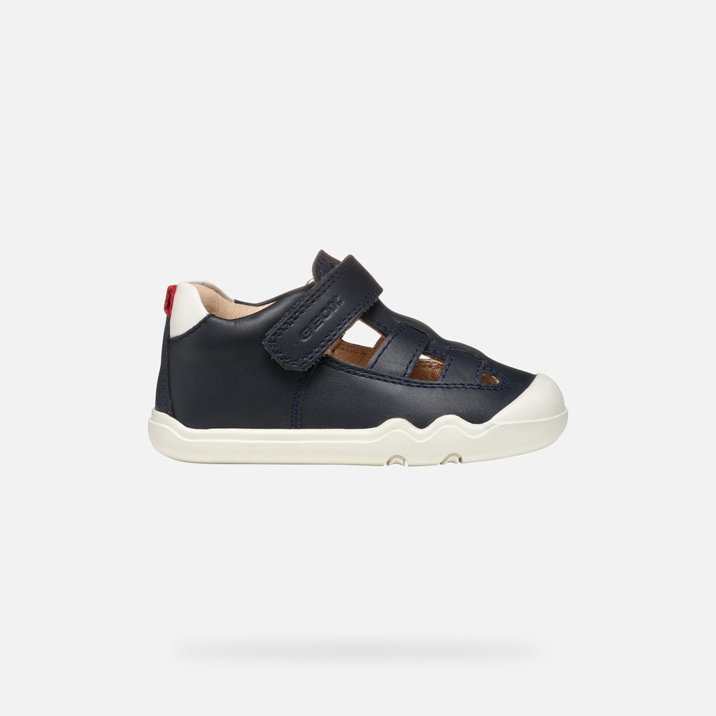 Tmavě modré chlapecké tenisky Geox Steppieup zaujmou moderním designem s praktickým řešením. Sandálový střih s výraznými průduchy zajišťuje skvělou ventilaci, zatímco nastavitelný pásek na suchý zip umožňuje pohodlné obouvání a ideální přizpůsobení noze.