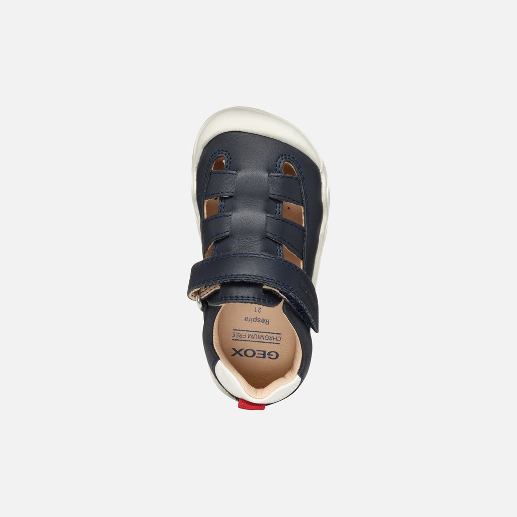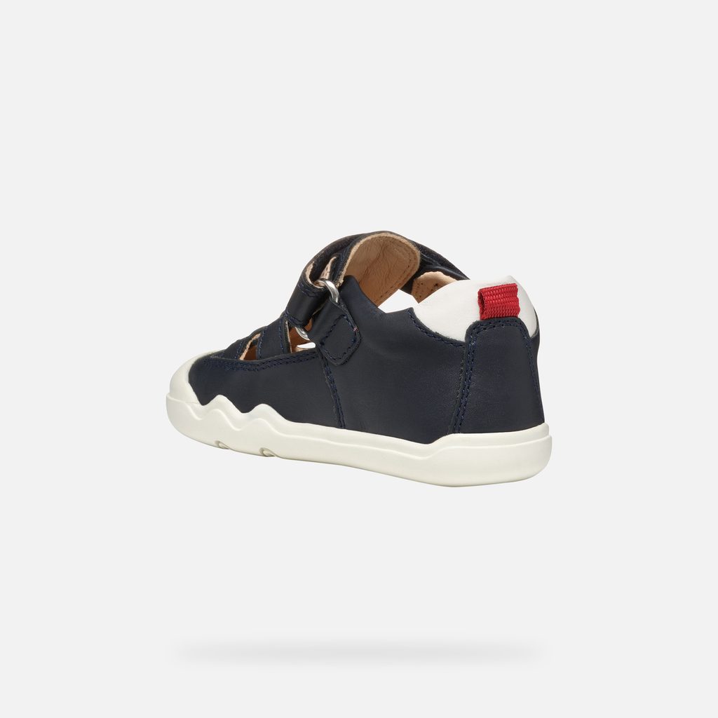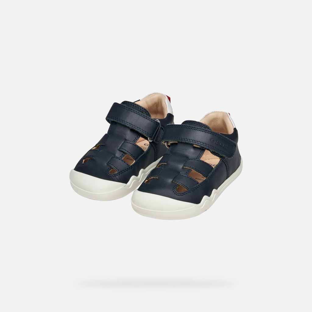 Tmavě modré chlapecké tenisky Geox Steppieup zaujmou moderním designem s praktickým řešením. Sandálový střih s výraznými průduchy zajišťuje skvělou ventilaci, zatímco nastavitelný pásek na suchý zip umožňuje pohodlné obouvání a ideální přizpůsobení noze.