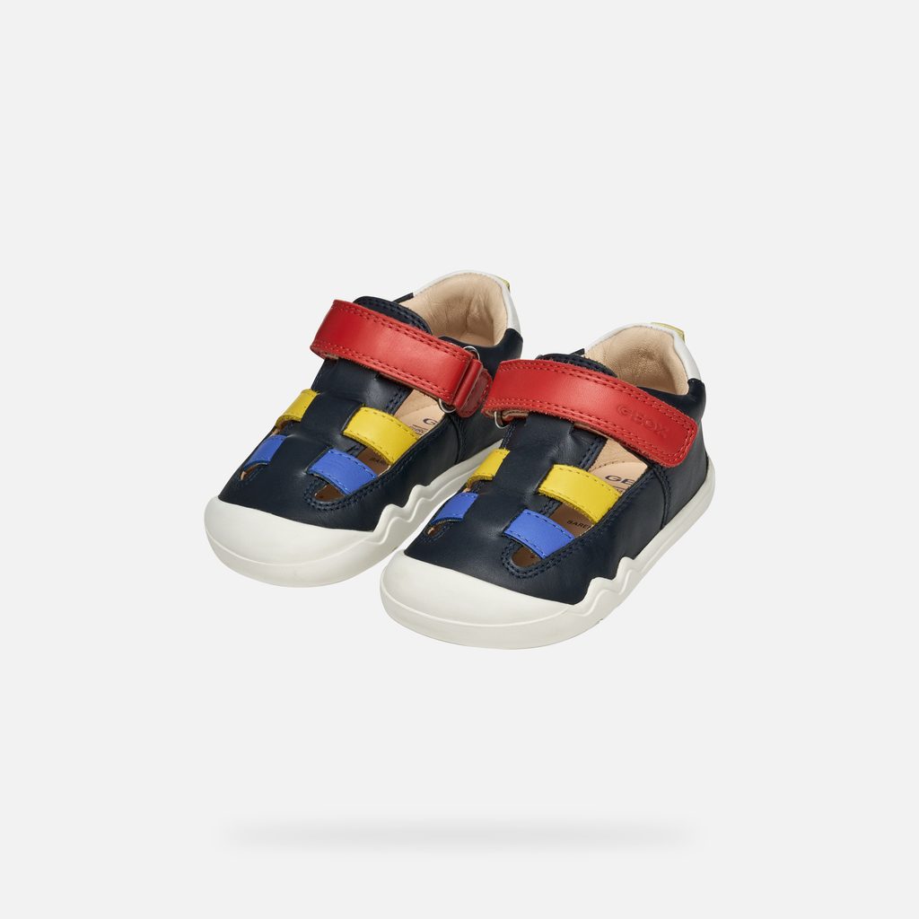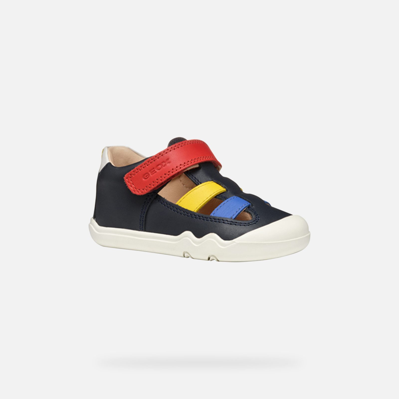 Dopřejte svému dítěti kvalitní obuv, která spojuje italský design s praktickými vlastnostmi pro zdravý vývoj nohou. Tmavě modré chlapecké tenisky Geox Steppieup zaujmou svým sportovním designem a praktickým řešením. Výrazné barevné prvky v podobě žlutého a modrého pásku doplňuje červený pásek s logem GEOX na vrchní části. Bílá podrážka s vlnitým lemováním dodává botám moderní vzhled.