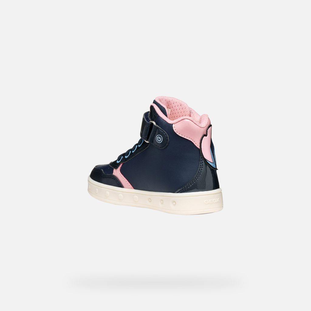 Tmavě modré dívčí tenisky Geox Skylin s oblíbenou postavičkou Stitch z Disney kolekce.