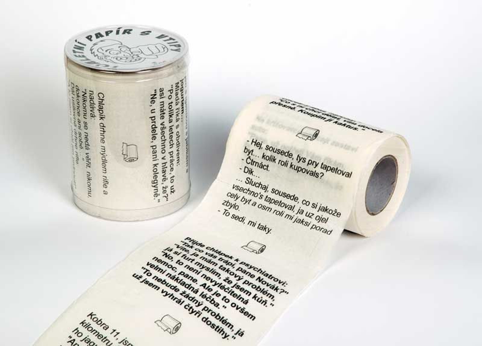 Toaletní papír s vtipy pro dlouhé chvíle na toaletní míse. Nevadí, pokud si zapomenete mobil nebo noviny, ještě si můžete přečíst toaletní papír. Praktický a zábavný dárek v jednom, který jistě najde využití. Toaletní papír je dvouvrstvý, dlouhý 20 m.