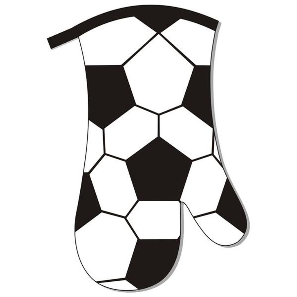 Kuchyňská chňapka - tvar rukavice je vhodná pro chycení a přenášení horkých nádob, pečících plechů z rozpálené trouby nebo na zvedání rozpálené pokličky. Motiv fotbal. Materiál - bavlna. Rozměry - 18 x 30 cm.