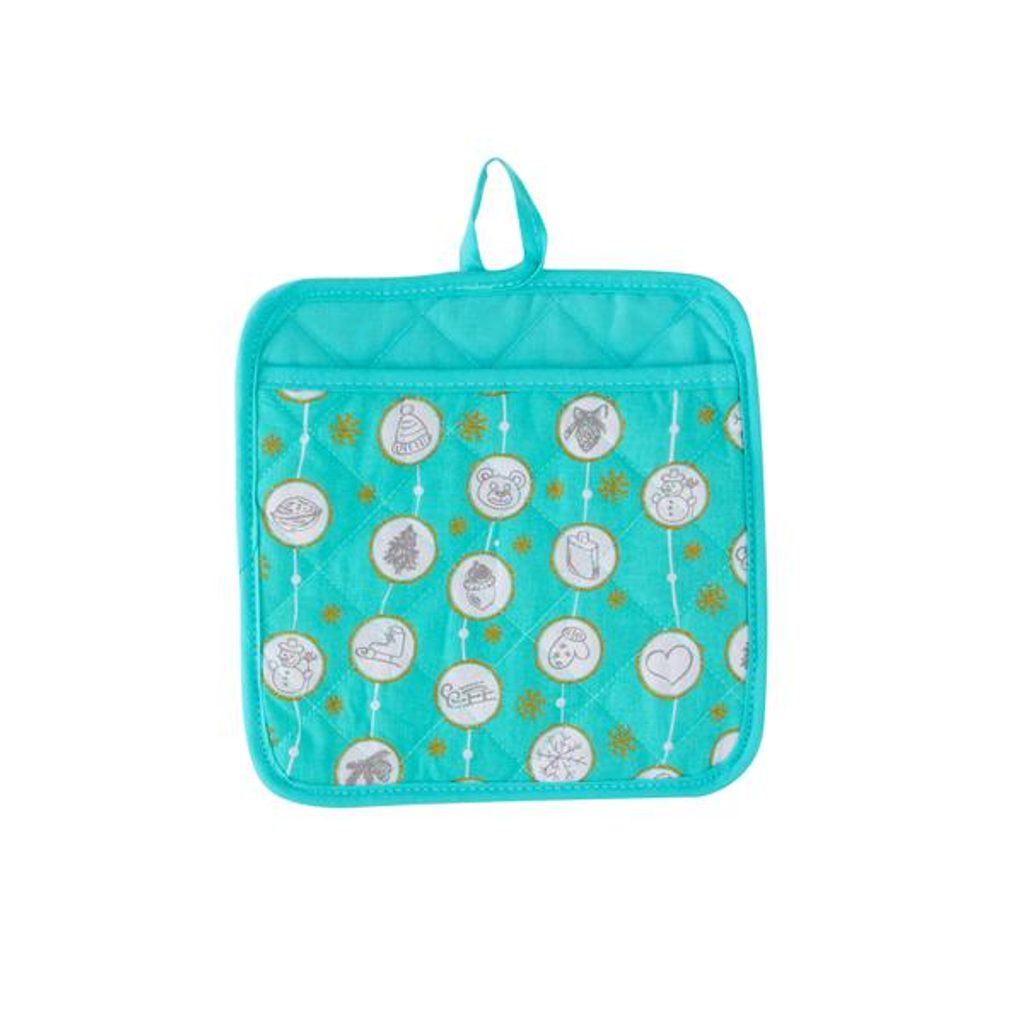 Malá vánoční chňapka "TYRKYS" z bavlny je vhodná pro chycení a přenášení horkých nádob, pečících plechů z rozpálené trouby nebo na zvedání rozpálené pokličky. Rozměry 20 x 20 cm. CHŇAPKA KUCHYŇSKÁ MALÁ VÁNOČNÍ "TYRKYS" 20X20CM