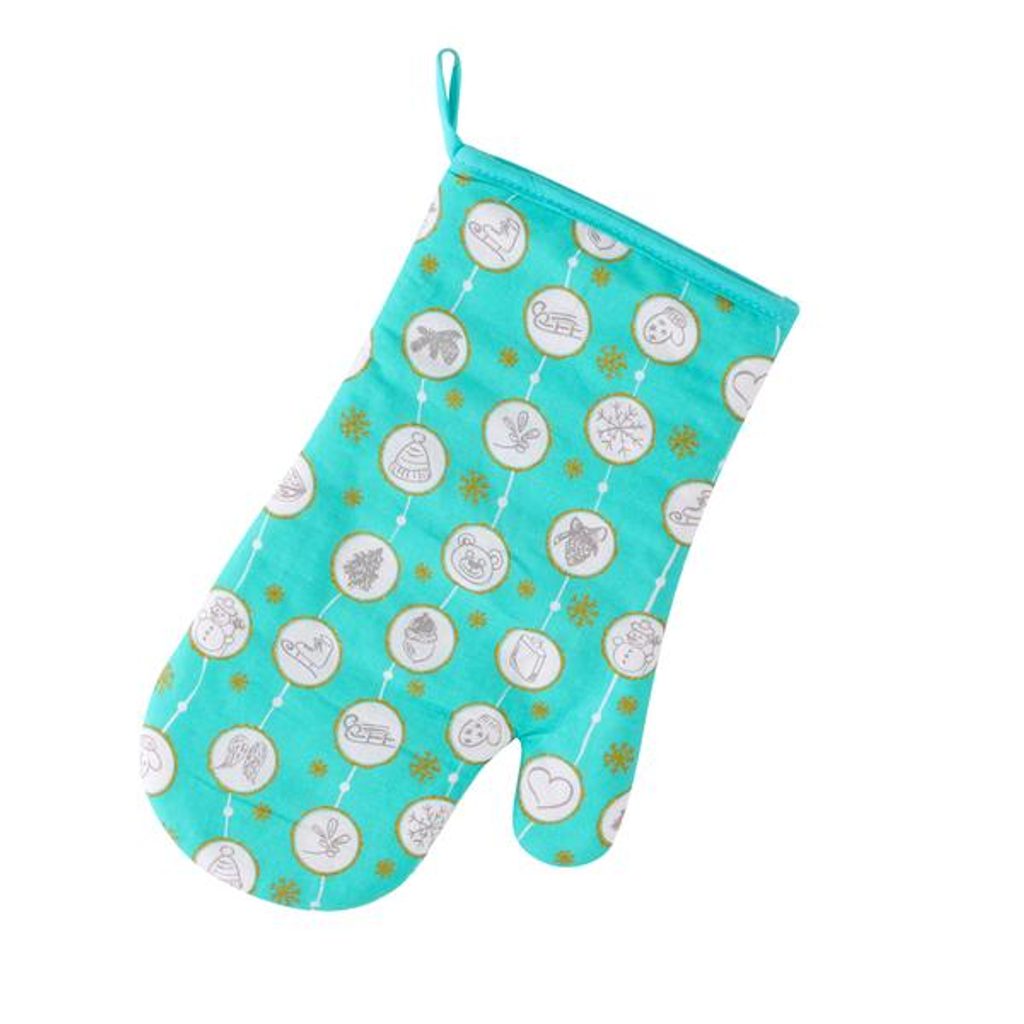 Kuchyňská chňapka vánoční "TYRKYS"- tvar rukavice je vhodná pro chycení a přenášení horkých nádob, pečících plechů z rozpálené trouby nebo na zvedání rozpálené pokličky. Materiál - bavlna, rozměry - 30 x 18 cm. CHŇAPKA KUCHYŇSKÁ VÁNOČNÍ "TYRKYS" 18X30CM