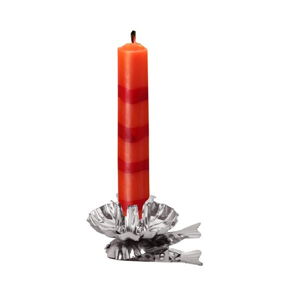 Praktické kovové držáčky svíček na stromeček se upevní na stromek pomocí klipsů. Balení 10 ks.Barva stříbrná.