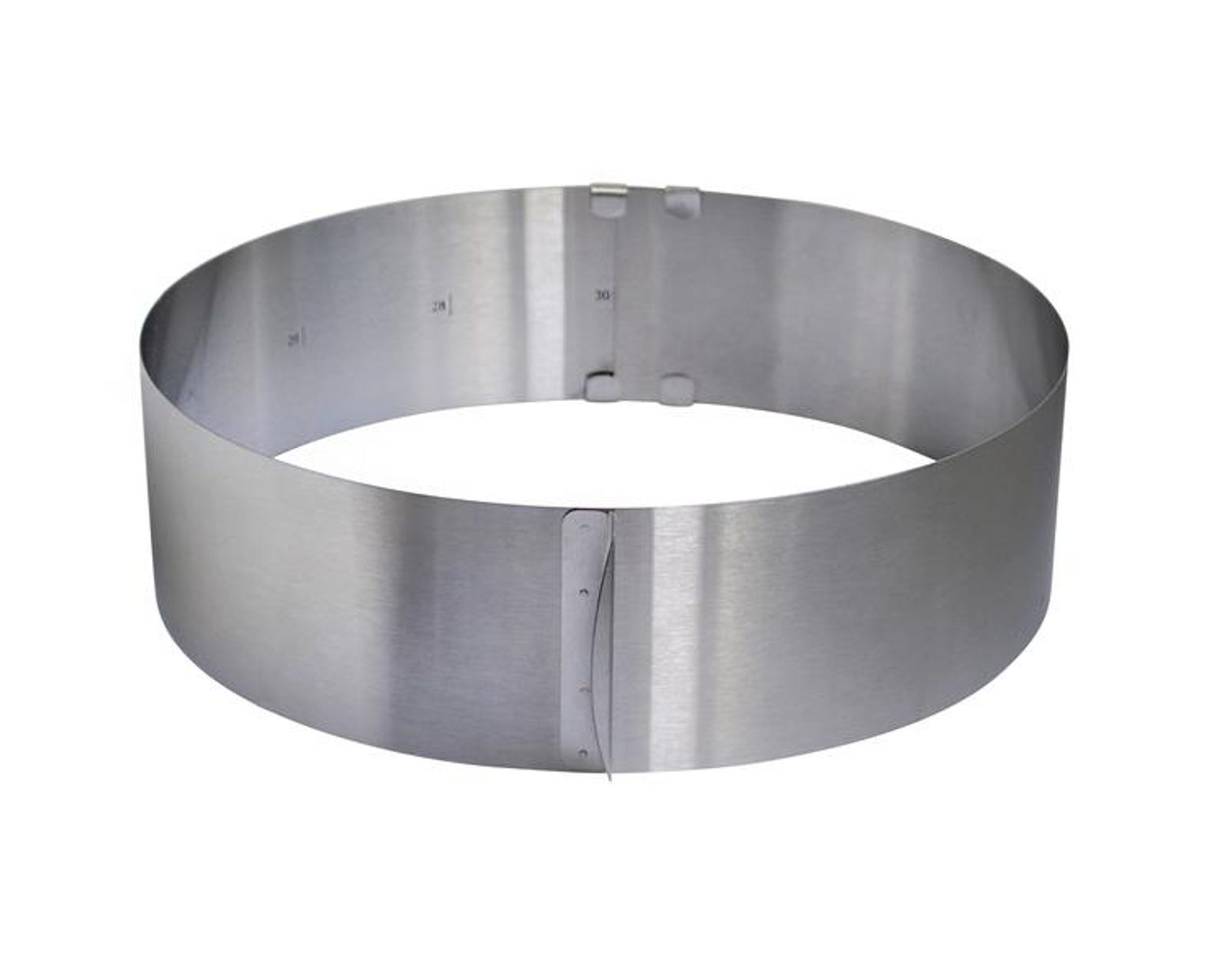 Posuvná kulatá nerezová forma lze jednoduše přizpůsobit velikosti požadovaného dortu.Ideální na několikapatrové dorty. Forma je vhodná pro použití všech typů pečících trub. Formu lze nastavit od pr. 16 cm do 30 cm.