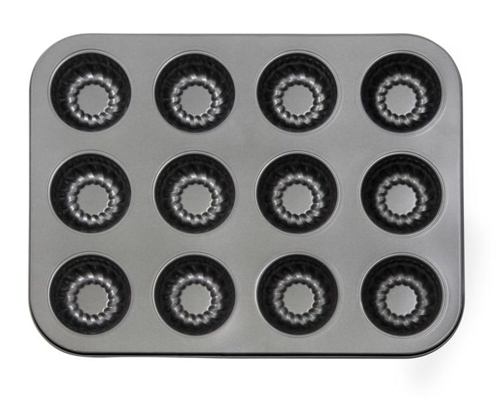 Forma na muffiny by neměla chybět v žádné moderní domácnosti. Je vyrobena z uhlíkové oceli, která umožňuje snadné pečení a přípravu pokrmů jak na sladko tak na slano. Nepřilnavý povrch je snadno omyvatelný.