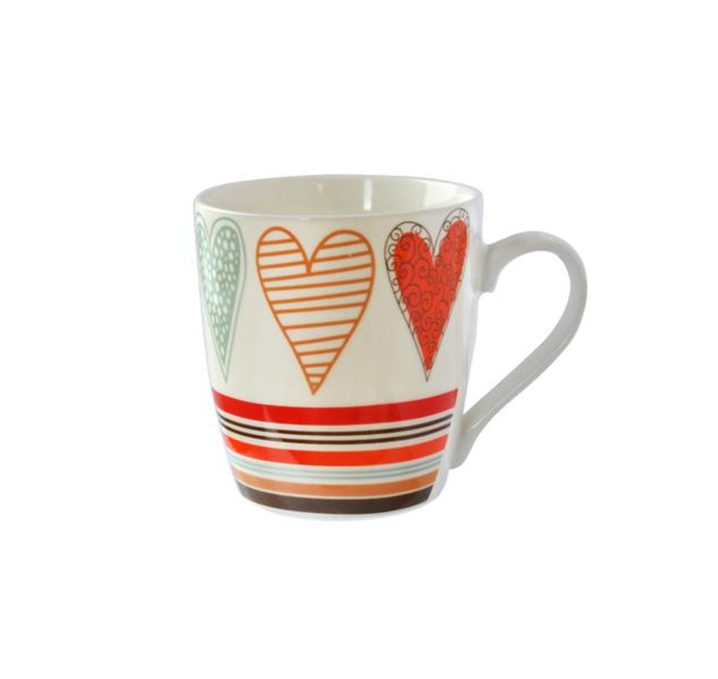 Hrnek s vkusným designem srdce v různém provedení - assort motivů srdíček. Je vhodný na horké nápoje - kávu či čaj. Objem 230 ml. Rozměry - 7,5 x 8,6 cm.