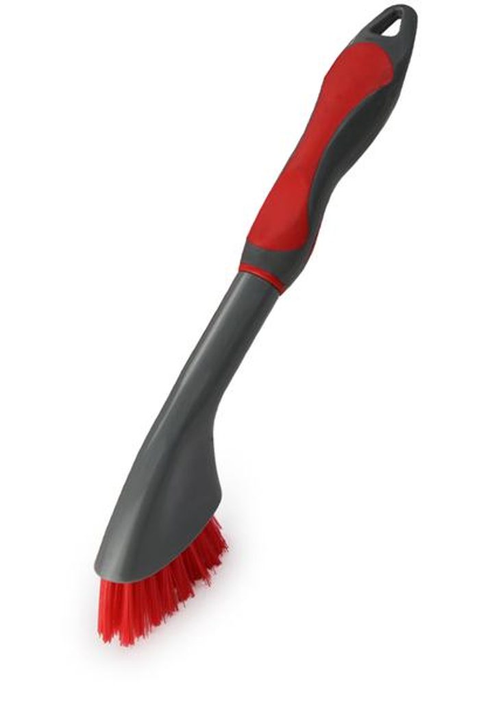 Kartáč na nádobí plochý, efektivně odstraňuje usazeniny. Kvalitní, pevný plast. Otvor na pověšení. Rozměr kartáče - 25 x 2,5 x 11,5 cm. Barva červeno - šedá.
