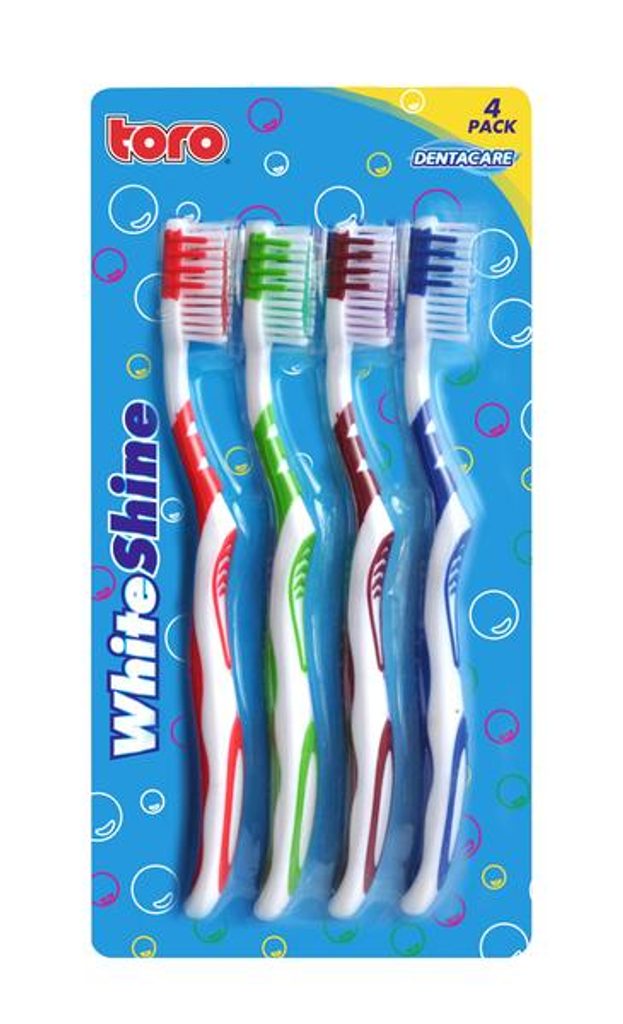 Kartáček na zuby pro ústní hygienu. Balení 4 ks - různé barvy. Délka kartáčku - 19 cm.