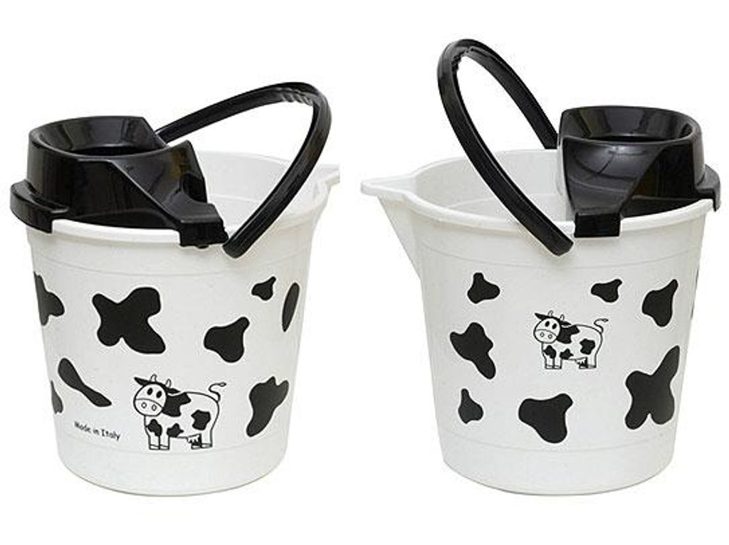 Kbelík kulatý 12 l se ždímadlem pro ždímání textilních mopů . Kbelík je potištěn vzorem "Kráva". Kbelík kulatý se ždímadlem, výlevkou, objem 12 l, 27 x 25 cm