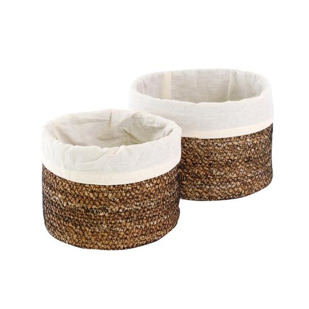 Košík s látkovou podšívkou 2 ks z balvny a mořské trávy zajistí u Vás doma pořádek, krásnější uspořádání i skladování Vašich věcí. menší košík: průměr:18,5 cm-výška:13,5 cm, větší košík:-průměr 23 cm-výška:15 cm
