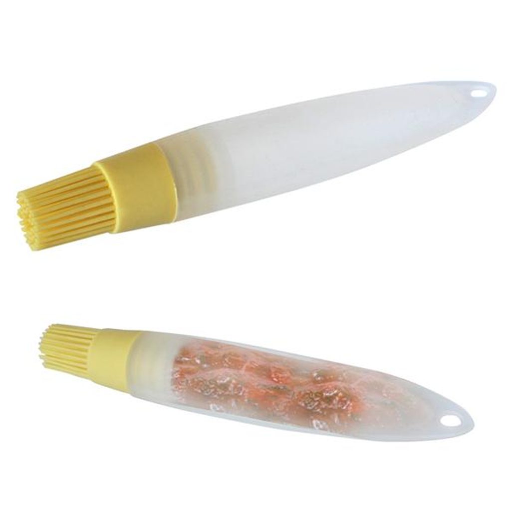 Silikonová mašlovačka se zásobníkem. Po odšroubování mašlovačky nalijte do zásobníku tekutinu, kterou chcete potírat - např. máslo, čokoládu, polevu atd. Materiál - silikon, plast. Rozměry - 18 x 3 cm. MAŠLOVAČKA SE ZÁSOBNÍKEM, SILIKON, 18X3CM