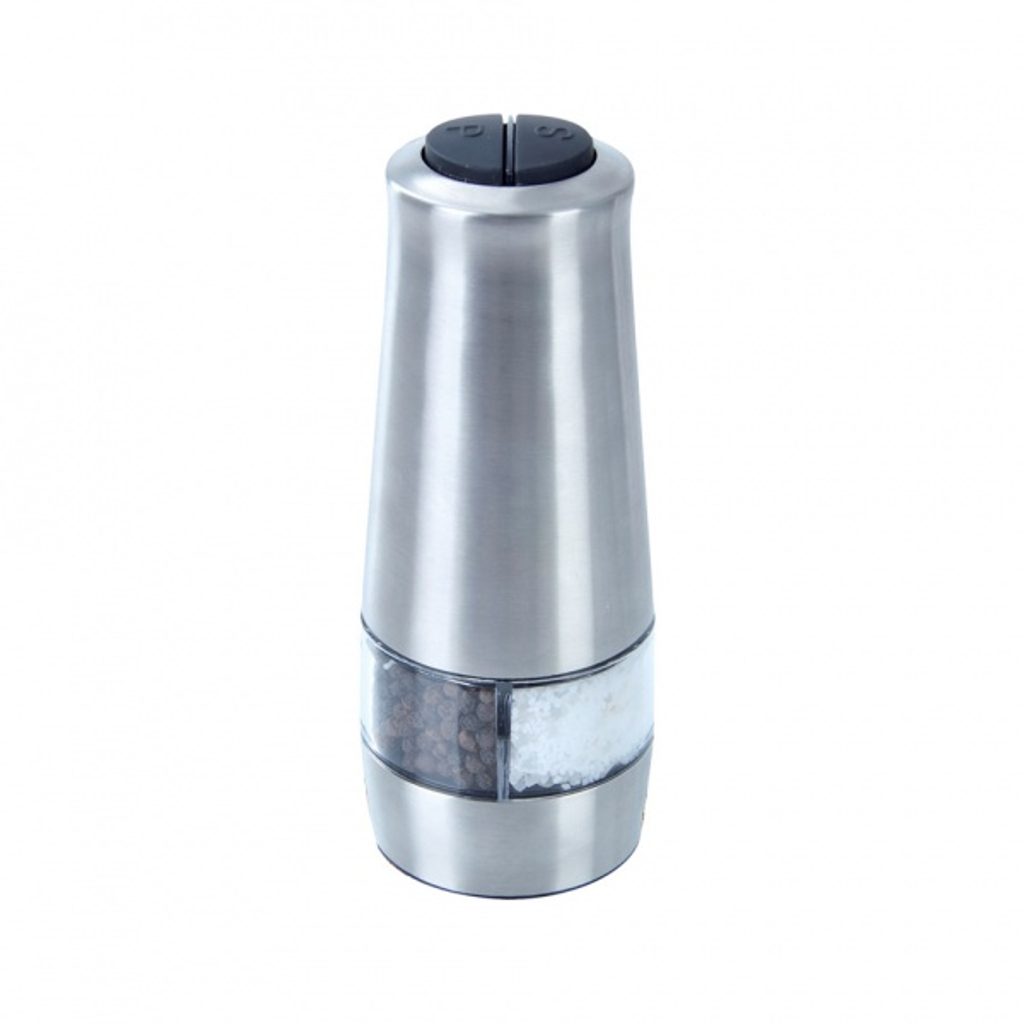 Mlýnek na sůl a pepř . Mlýnek je poháněný šesti tužkovými bateriemi AAA stiskem tlačítka. Díky modernímu designu je vhodný i jako dekorace na stole i jako dárek. Rozměry mlýnku: 17,5 x 7,2cm. Baterie nejsou součástí balení. Materiál - nerez, plast.