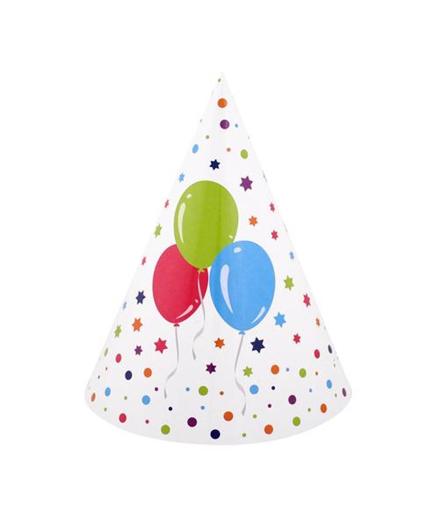 Papírové "PARTY" čepičky s veselým motivem jsou vhodné na každou oslavu nebo párty. Balení 6 ks. Rozměry - 14 x 11 cm.