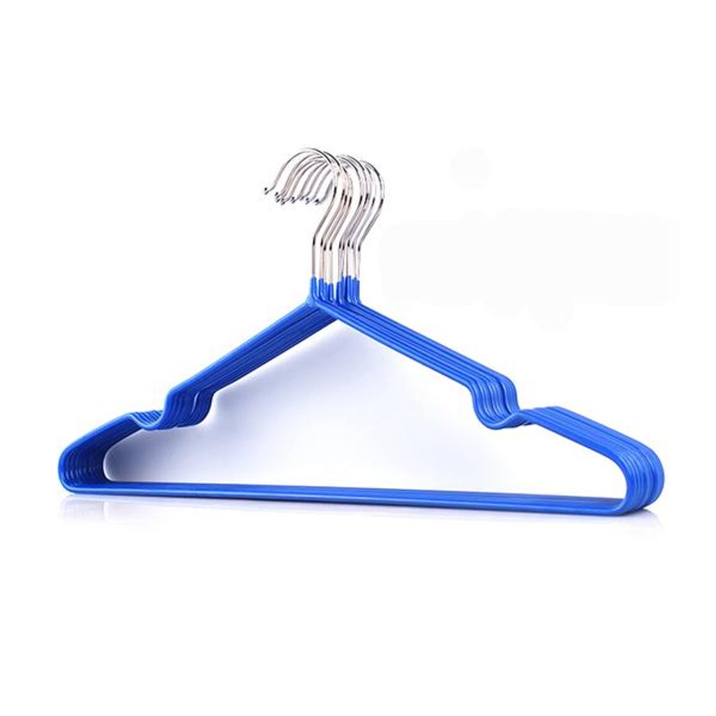 Ramínko kovové - sada 6 ks. Už Vás nudí plastová nebo dřevěná šatní ramínka? I ramínka mohou být zajímavá, stylová a originální. Kovové ramínko se bude hodit do vintage i industriálních interiérů při skladování oblečení. Rozměry ramínka - 41 x 19,5 cm. Barva modrá.
