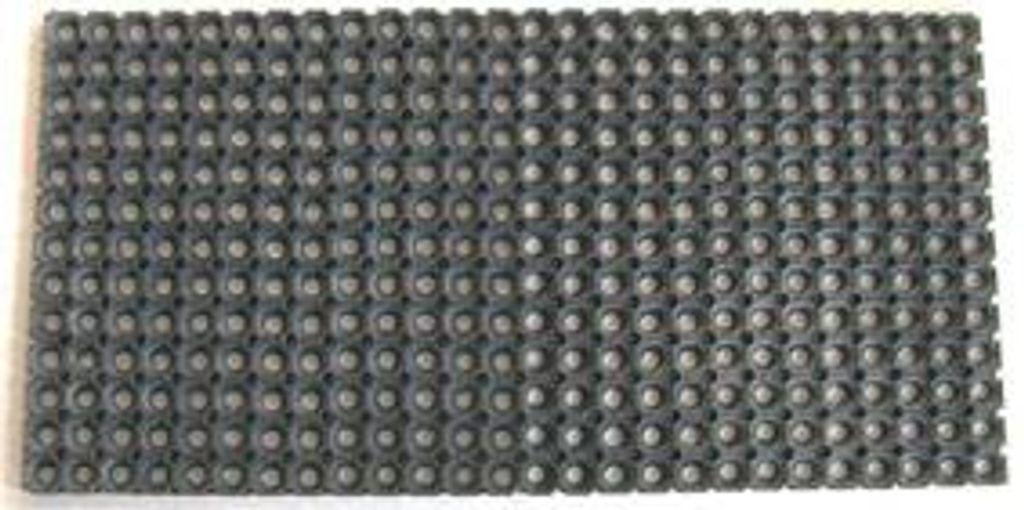 Hladká gumová rohožka. Praktická rohožka před dveře na čištění obuvi. Stabilní gumová rohožka s kulatými otvory při čištění obuvi po podlaze neklouže. Jednoduché čištění. Černá barva. Rozměry rohožky 50 x 100cm.