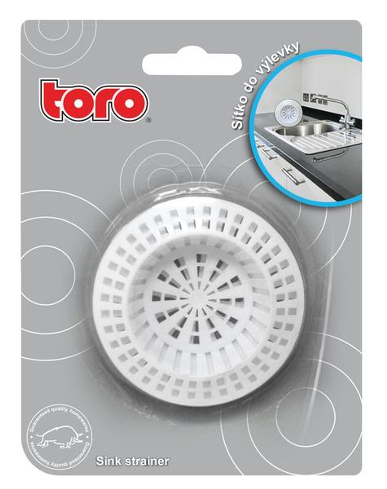 Praktické plastové sítko do dřezu neboli lapač nečistot a odpadů ve dřezu. Prodává se na závěsné kartě pod značkou TORO. Sada 2 ks. Průměr 7 cm.Barva bílá.