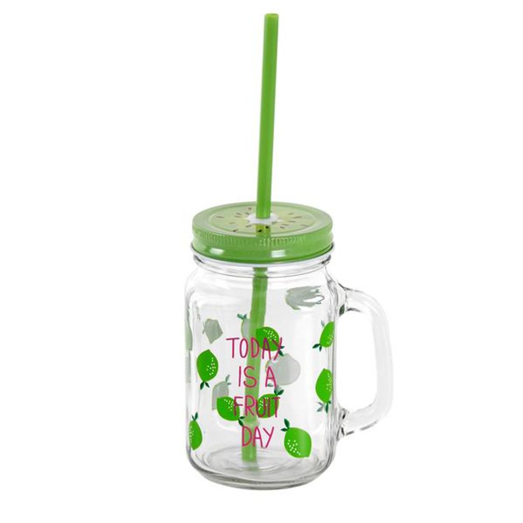 SKLENICE "MASON" S VÍČKEM A BRČKEM, 450ML, OVOCE