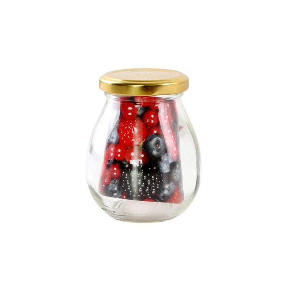 Zavařovací sklenice MAYO o objemu 245 ml s víčkem na závit. Je vhodná především pro konzervaci marmelád a džemů.