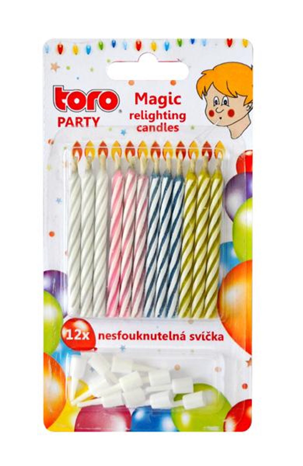 TORO SVÍČKY NA DORT NESFOUKNUTELNÉ 12KS + DRŽÁKY 12KS_hamashop