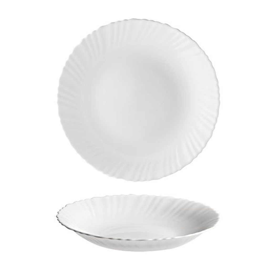 Polévkový talíř "TITAN" průmě 22 cm z opálového skla. Materiál je odolnější než porcelán, neodšťipuje se, je čistě bílý a navíc velmi lehký. Je vhodný do myčky nádobí i mikrovlnné trouby.
