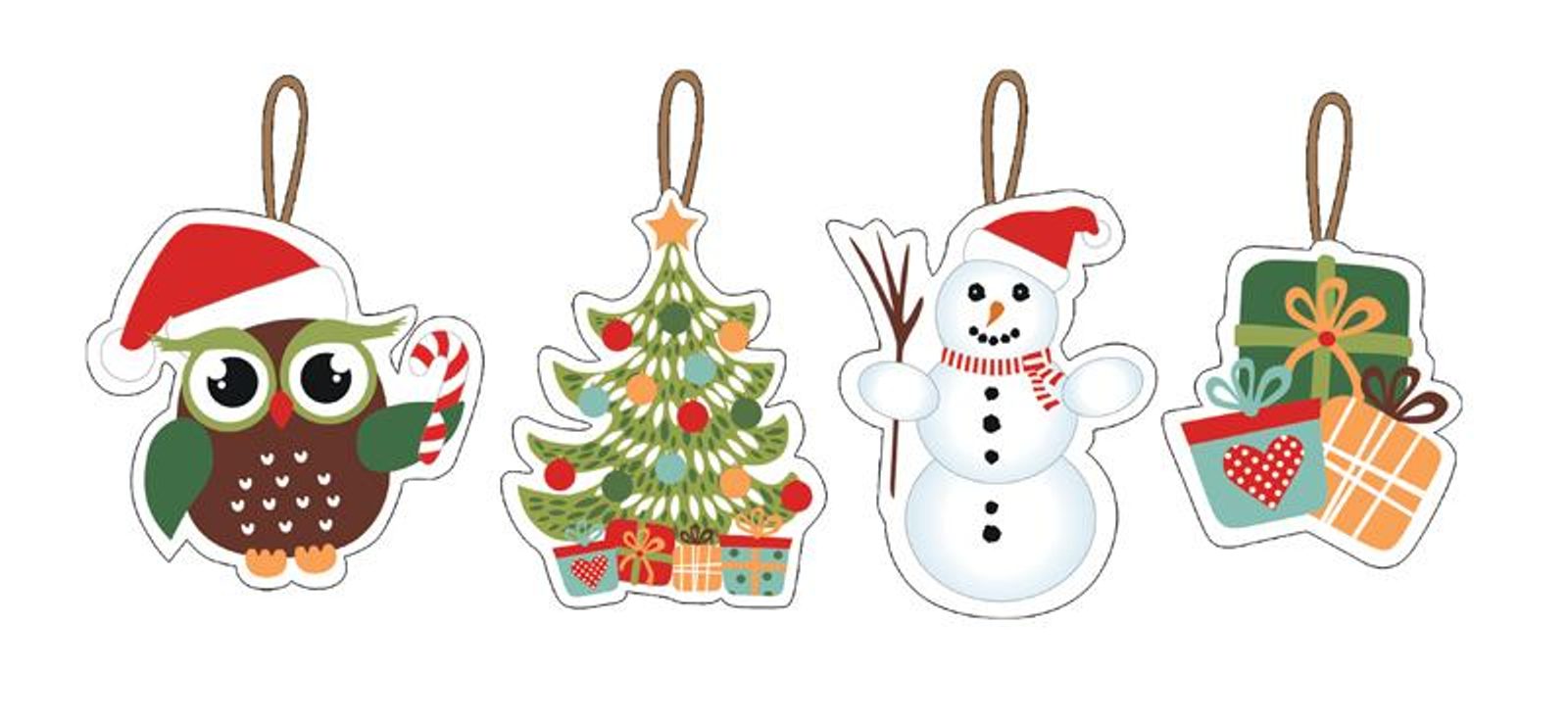 Sada 12 ks vánočních oboustranně potištěných papírových ozdob, 4 různé druhy á 3 ks - sova, sněhulák, stromeček, dárky. Každá z ozdob má vlastní červenobílé provázkové poutko. Ozdoby jsou vyrobené z kvalitního papíru 300 g/m3. Výška ozdob - 7-8 cm. VÁNOČNÍ OZDOBY 7-8 CM, 12 KS