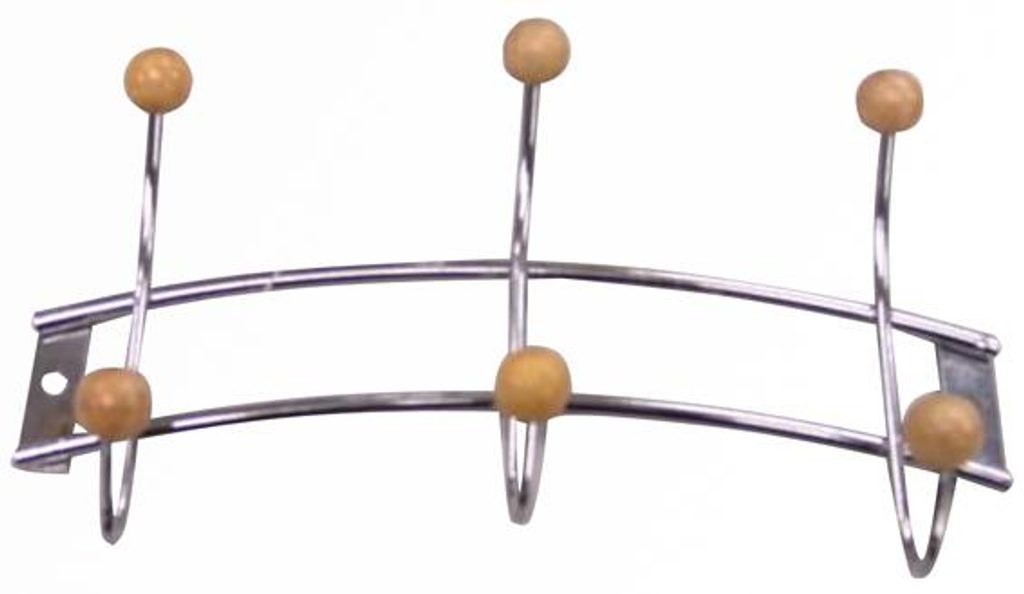 V zádvěří či jiném pokoji Vám tento věšák velmi dobře poslouží. Má tři háčky, vyroben z pochromovaného kovu se dřevěným ukončením. Šroubky jsou součástí balení. Rozměry - 21 x 11,5 cm.