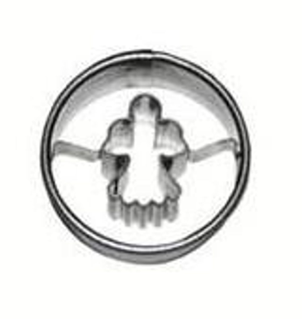 Vykrajovátko - tvar kolečko se andělem je vyrobeno z pocínovaného potravinářského plechu. Vhodné na cukroví, perníčky, potahové nebo modelovací hmoty.  Průměr kolečka - 4 cm. VYKRAJOVÁTKA NA CUKROVÍ-ANDĚL, 4CM