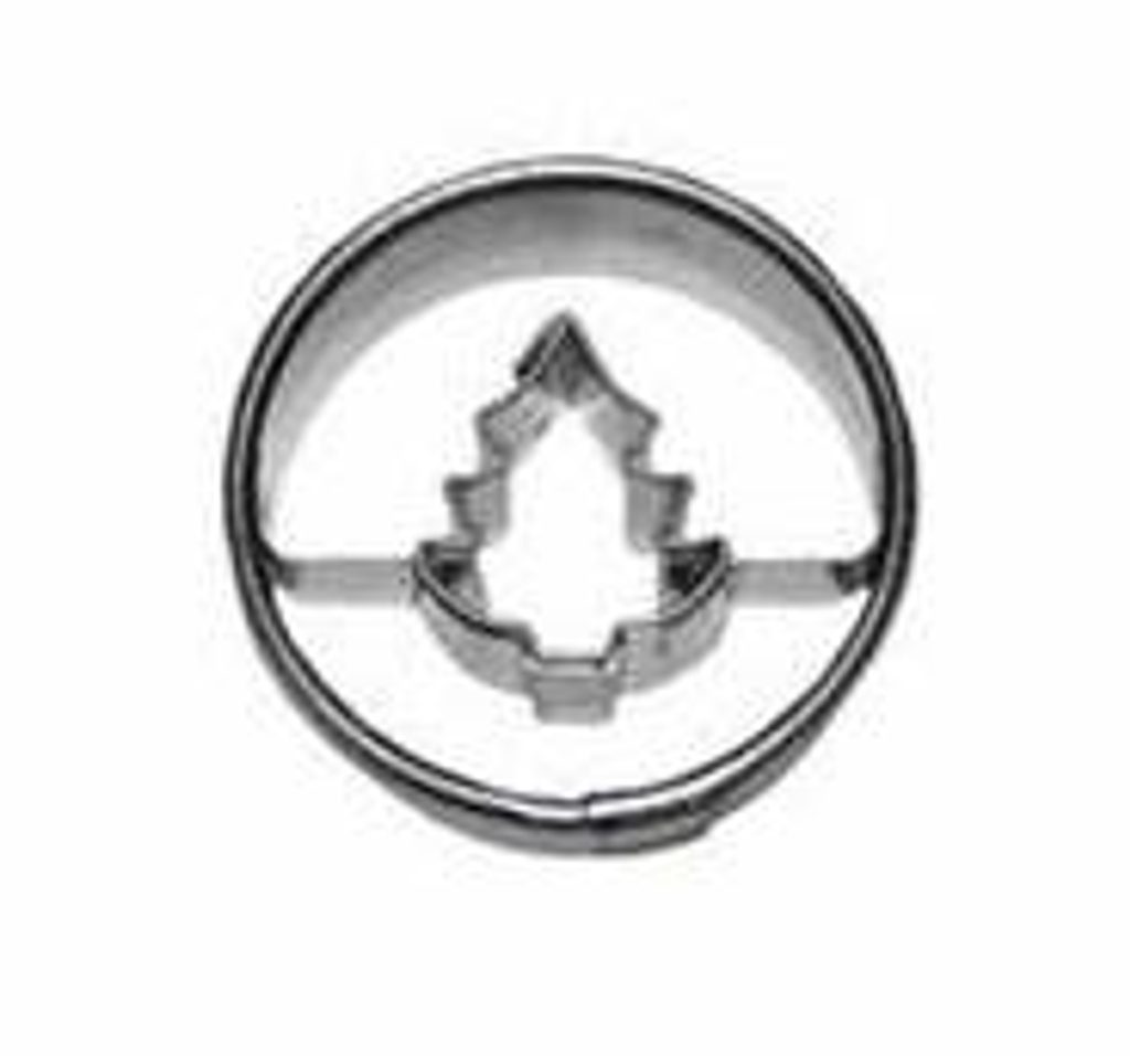 Vykrajovátko - tvar kolečko se stromečkem je vyrobeno z pocínovaného potravinářského plechu. Vhodné na cukroví, perníčky, potahové nebo modelovací hmoty. Průměr kolečka - 4 cm.