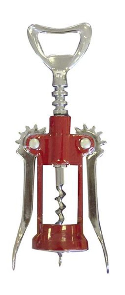 Vývrtka s křidélky slouží ke snadnému otevírání lahví s korkovým uzávěrem a je vyrobena z nerezového materiálu. Vývrtka má v horní části korunkový otvírák se kterým otevřete i obyčejnou láhev. Její použití je velmi snadné a má elegantní design. Barva - stříbrná, červená. Rozměry - 17 x 4,5 cm.