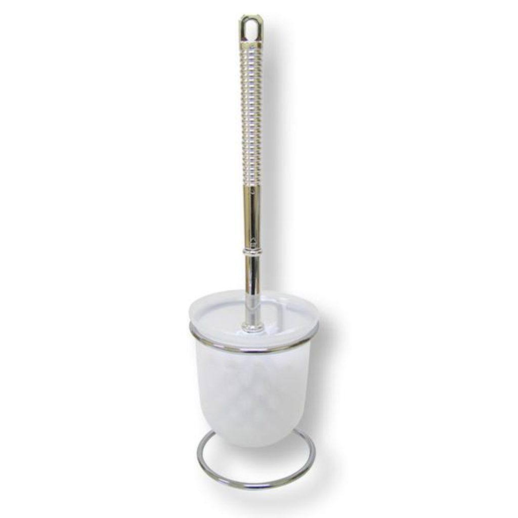Souprava na toaletu - štětka s kovovým držadlem v plastové nádobě na kovovém stojánku. Rozměr stojanu - 13,5 x 10 cm, rozměr štětky - 33 x 8,3 cm. Materiál - plast, pochromovaný kov.