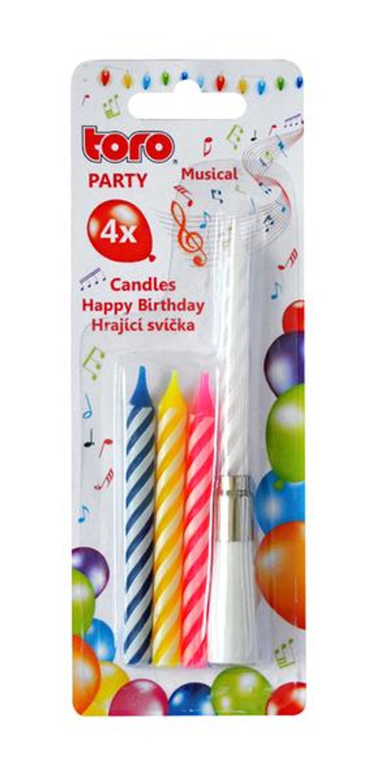 TORO ZPÍVAJÍCÍ DORTOVÁ SVÍČKA "HAPPY BIRTHDAY"+4 SVÍČKY_hamashop