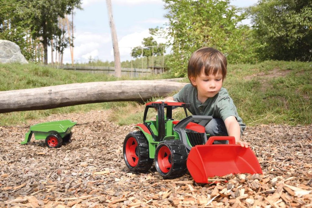 Kvalitně zpracovaný traktor s nakládací lžíci a přívěsem byl navrhnut a vyroben tak, aby odpovídal požadovanému modernímu vzhledu, funkčnosti, odolnosti, kvalitnímu zpracování, maximální hrací hodnotě.