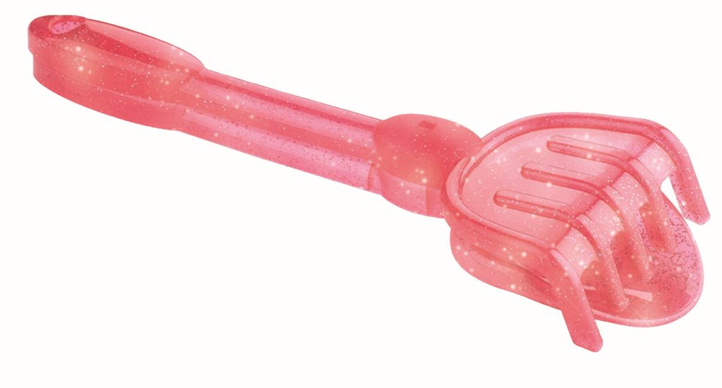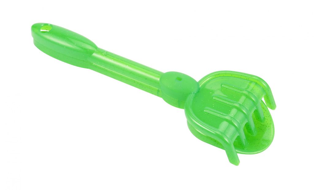 Průhledná třpytivá lopatička s hrabičkami, délka 30 cm. 4 barevné druhy provedení: modrá, žlutá, růžová nebo zelená.