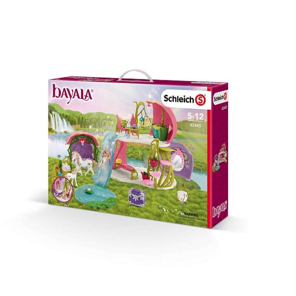 Třpytivý květinový dům s jednorožci, jezerem a stájí