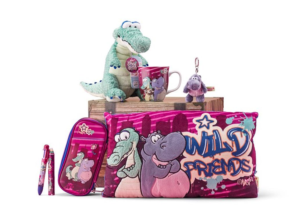 Divocí kámoši - hroch DJ Nilbert a krokodýl Croco McDile na roztomilém polštářku. Polštářek také šetří životní prostředí, protože je součástí kolekce NICI Green, vyrobené převážně z recyklovaných plastových lahví. Věk: 0+ Truhla plná hraček „NICI 001“, limitovaná edice