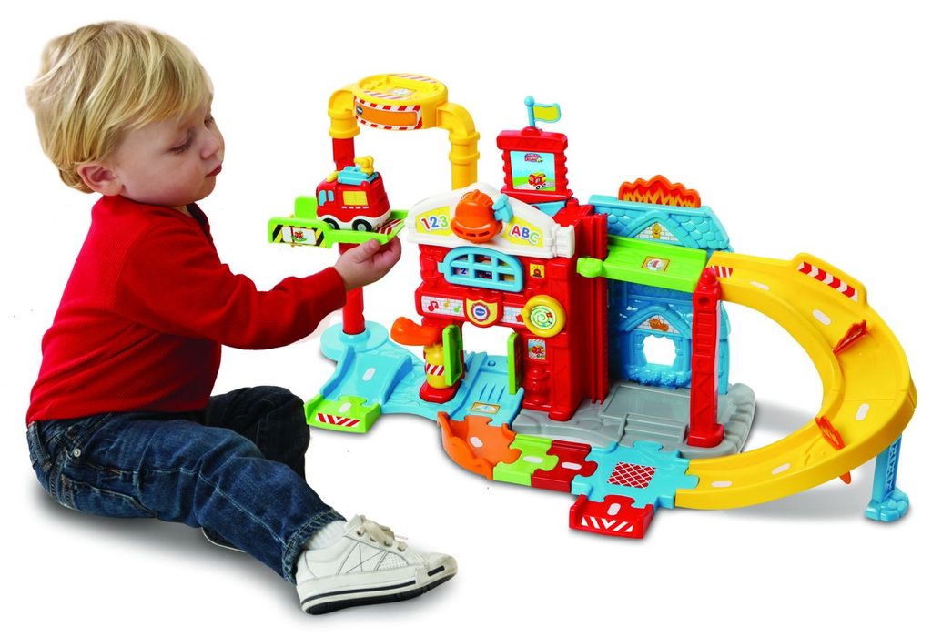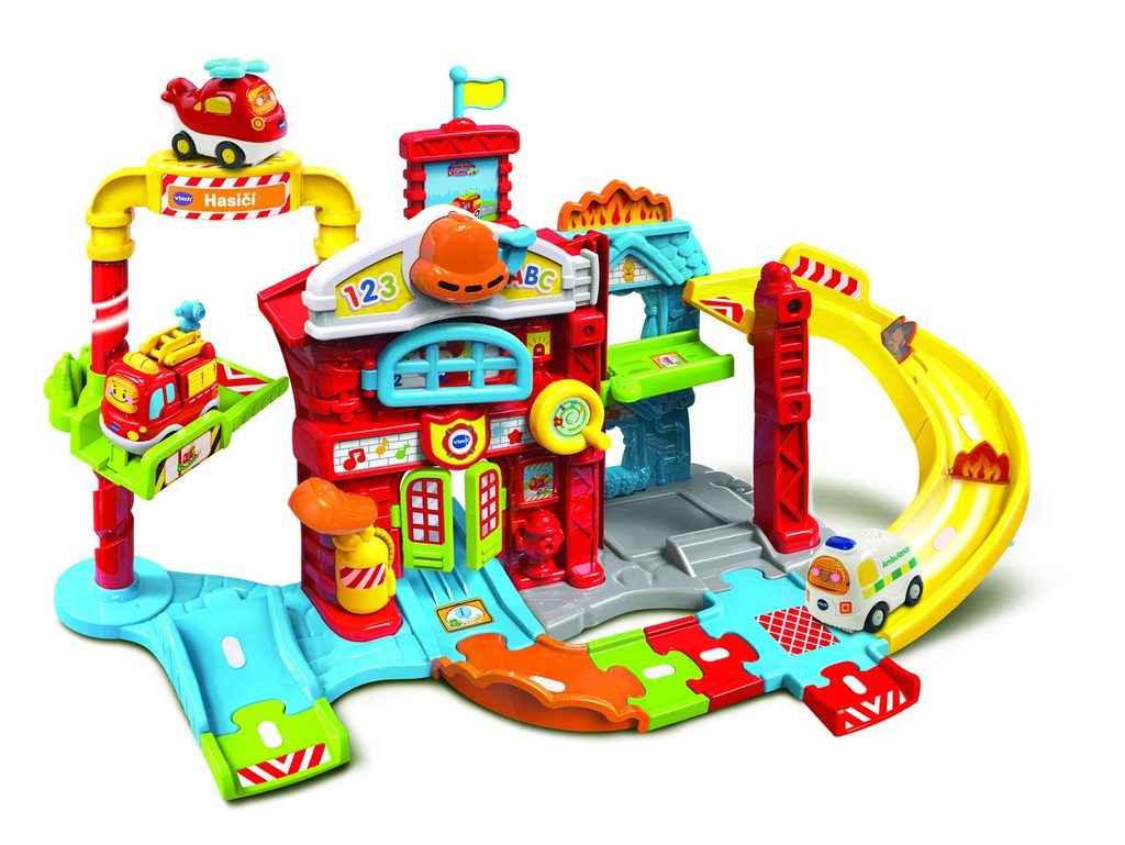 Tut Tut Autíčka – Hasičská stanice. Interaktivní hračka s jedním Tut Tut mluvícím hasičským autíčkem. Hasičská stanice umožňuje: • sestavit desítky různých variant budovy a cest • povídání a různé reakce Tut Tut autíček na různých místech dráhy pomocí SmartPoint bodů. • otáčení po točně nahoru a dolu (podporuje rozvíjení jemné motoriky) • přejezd výtahovou plošinou přímo na střechu stanice • používání hasičského alarmu • pumpování • navíjení hadice • otevírání a zavírání vrat i oken • sklápět protipožární stěnu • autíčko zná desítky roztomilých frází, zazpívá 3 písničky a zahraje 6 melodií. Hasičskou stanici lze přímo propojit s ostatními dráhami pro autíčka Tut Tut. Hra s Tut Tut Hasičskou stanicí autem rozvíjí u dětí především: • motorické dovednosti • představivost a kreativitu • slovní zásobu. Rodiče také ocení vysokou odolnost hračky proti mechanickému poškození i například automatické vypínání hračky, což zajistí vyšší životnost baterie.