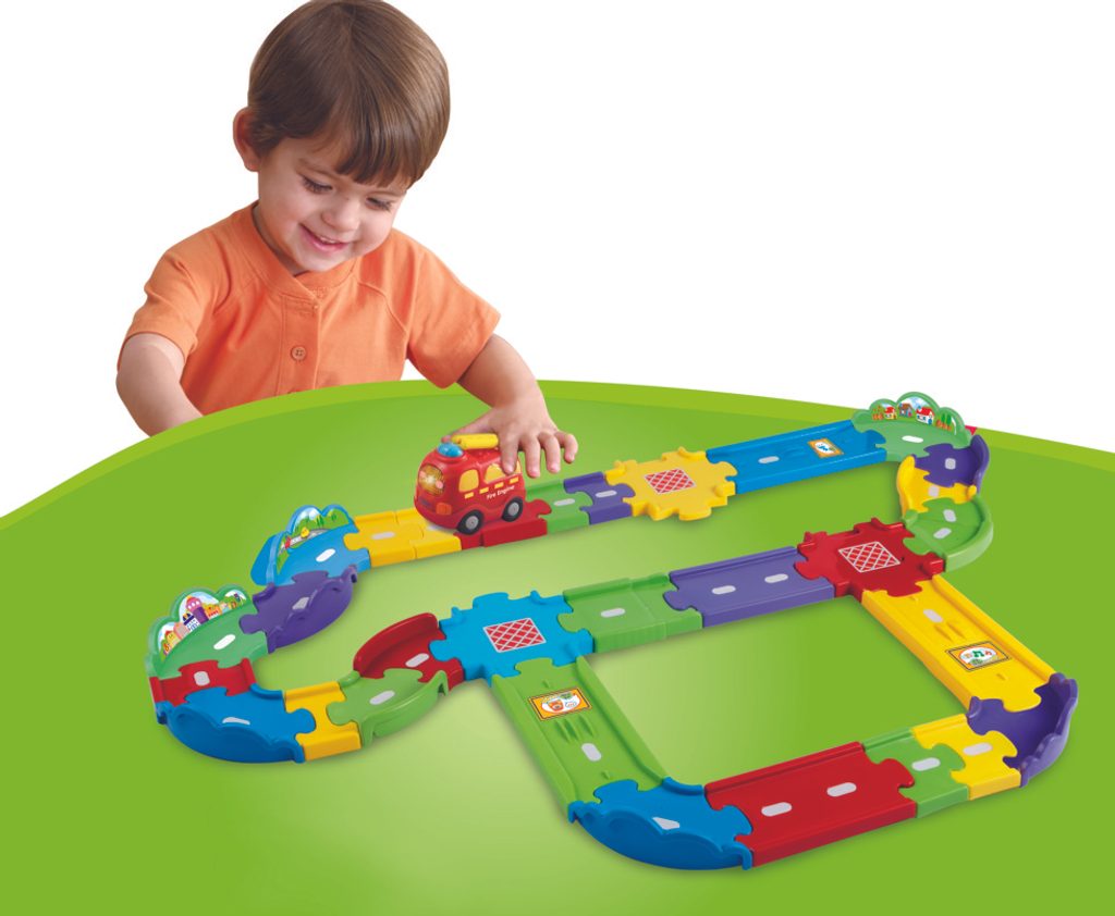 Základní variabilní dráha pro autíčka Tut-Tut. Lze libovolně spojovat s ostatními dráhami. Nechte vaše děti zaparkovat, jezdit a hrát si s autíčkami Tut-Tut. Děti budou, mimo jiné, při hře rozvíjet své manuální dovednosti, posilovat jemnou motoriku, rozvíjet slovní zásobu i kreativní myšlení. Všechny dráhy pro autíčka Tut-Tut mají na různých místech zabudovaná komunikační místa - "Smartpointy". Každé takové místo je něčím typické a ojedinělé, takže autíčka Tut-Tut mají na různých Smartpointech připravenou vždy jinou frázi, písničku nebo upozornění. Postavte si svůj svět s autíčky Tut-Tut!