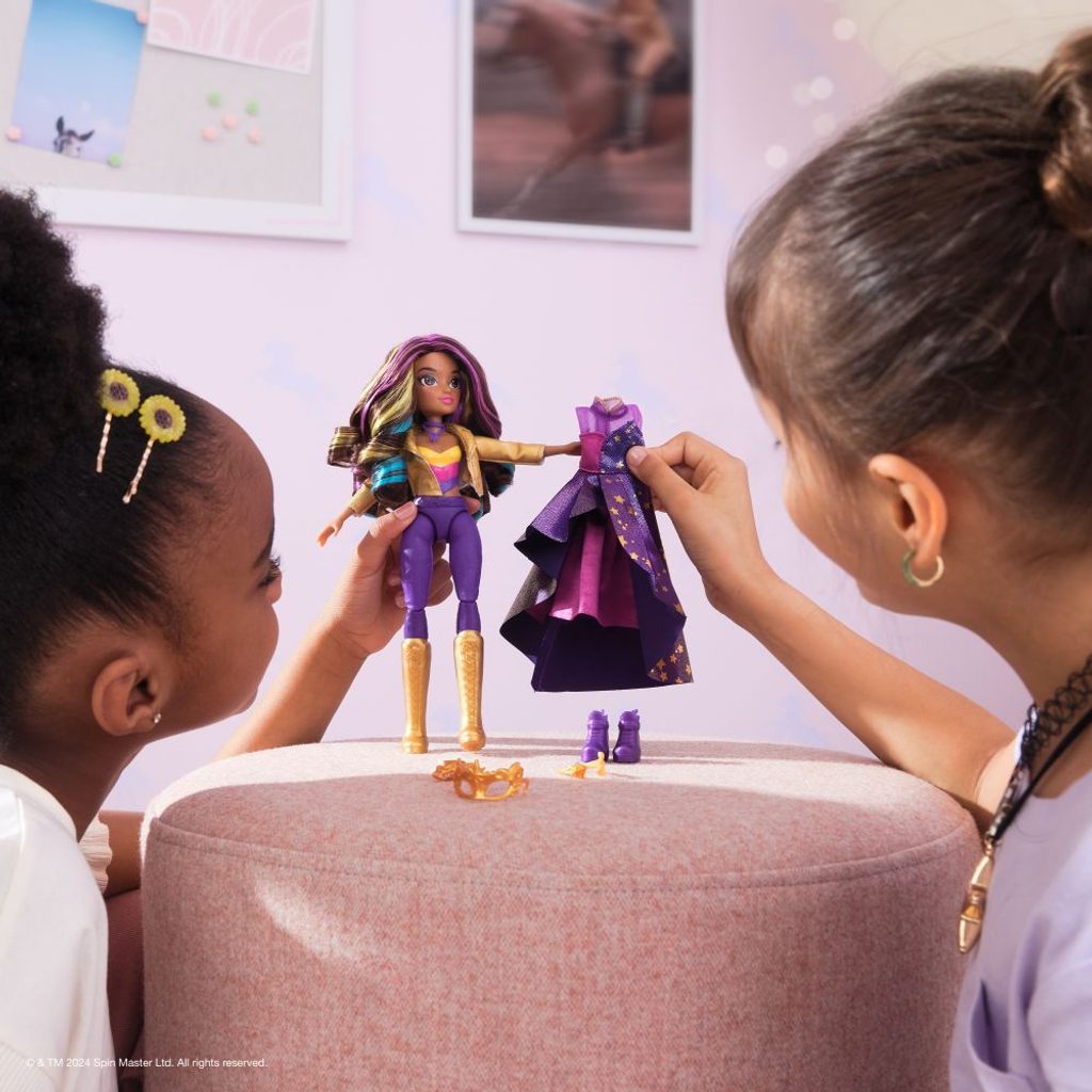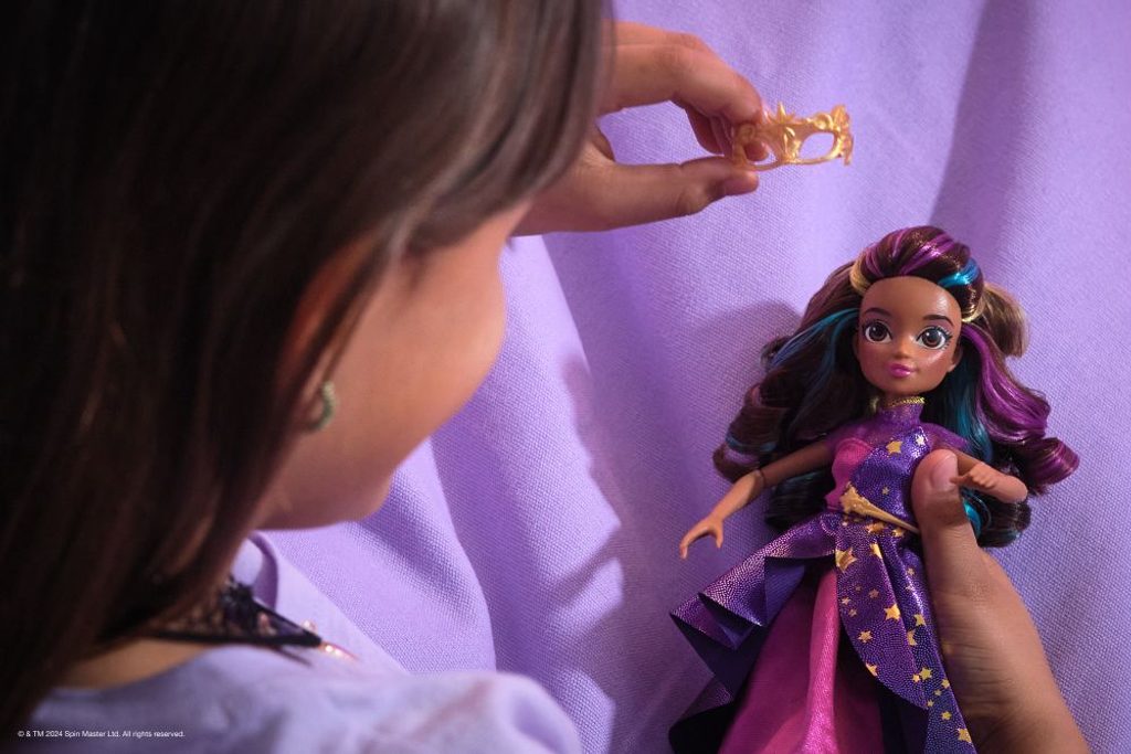 Oslavte kouzlo víl osudu na maškarním plese Jednorožčí akademie s maškarní panenkou Sofií! Díky této 24cm módní panence inspirované animovaným pořadem od NETFLIXu a knižními bestsellery působí Sofie jako živá. Sofie se může pochlubit autentickými detaily a 9 doplňky pro panenky. Je oděna ve své jezdecké výstroji a připravena vyrazit za dobrodružstvím na světelné duhové Polárce, svém věrném jednorožci (prodává se samostatně)! Jakmile přijde čas vyrazit na ples, převlékněte Sofii z její odnímatelné bundy, náhrdelníku a bot do asymetrických šatů s hvězdným vzorem, opasku, masky a fialových lodiček. Pomocí hřebenu a sponky vyčesejte její vlasy s melírem do vhodného účesu. Díky 9 kloubům může Sofie zaujmout různé pózy a umožní vám přehrát si scény z pořadu! Chcete-li objevit všechny způsoby, jak si užít svět Jednorožčí akademie a rozšířit jej o své oblíbené postavy, prohlédněte si panenky Avy a Isabel a jejich jednorožců Lístka a Řeky (prodávají se samostatně). Kouzelné pouto mezi studenty Jednorožčí akademie a jejich jednorožci rozproudí nekonečné příběhy plné dětské představivosti. Určeno pro děti, které mají rády jednorožce a koně, panenky a doplňky, hračky pro panenky, sběratelské předměty, plyšové hračky a další. Hračky s tematikou Jednorožčí akademie jsou perfektním dárkem pro dívky k narozeninám nebo jakékoli jiné příležitosti. Přineste domů maškarní panenku Sofie deluxe z Jednorožčí akademie!