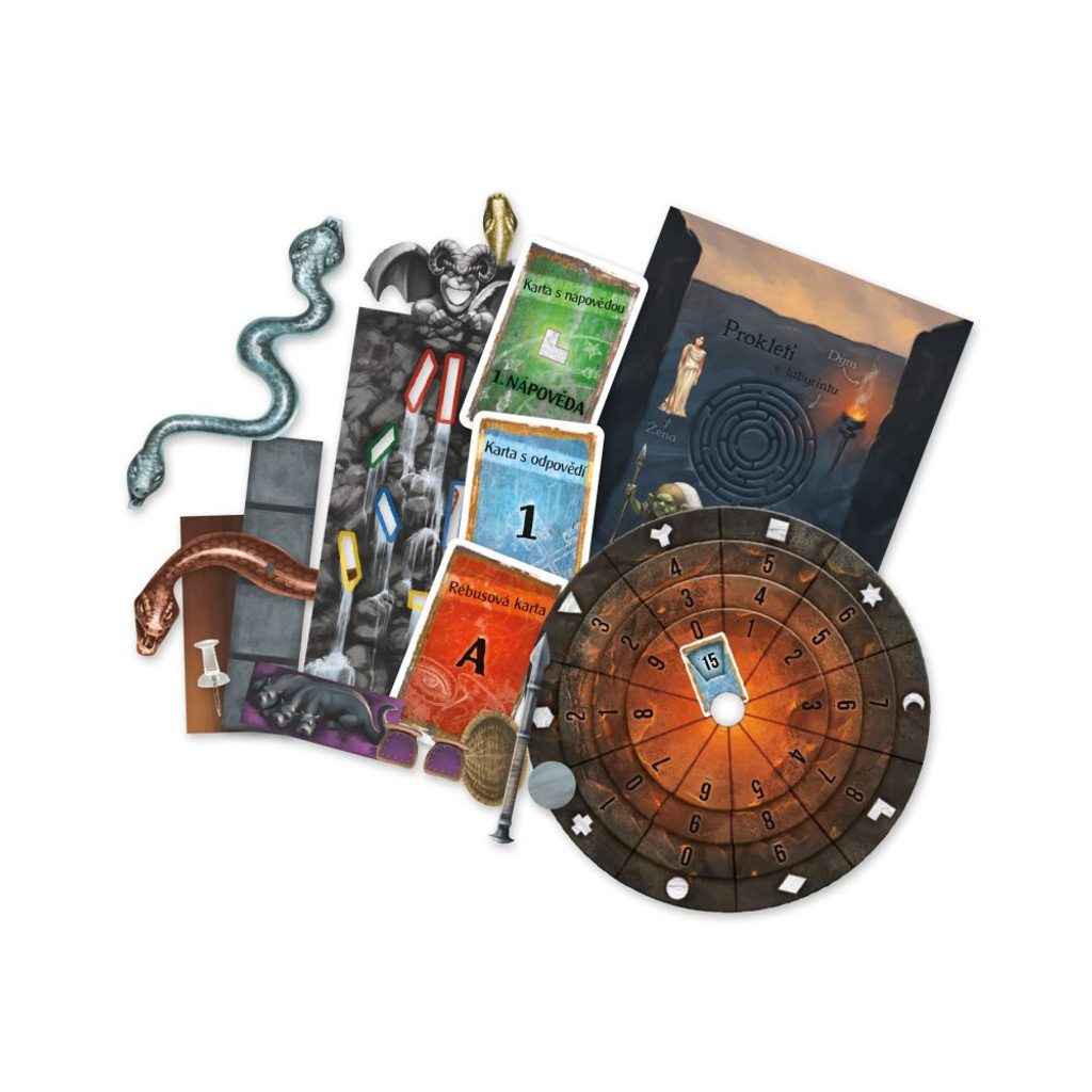 Vstoupíte do tajemného labyrintu. Vtom se náhle s hlasitým bouchnutím zavře. Jste uvězněni! A socha před vámi najednou ožije a promluví… Vyřešte rébusy nebo budete labyrintem bloudit navždy! Věk: 10+. Texty hry v CZ, pravidla CZ/SK.