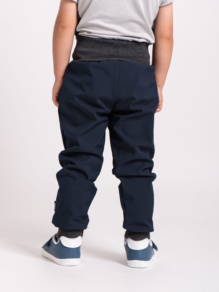 Unuo, Dětské softshellové kalhoty s fleecem Basic, Tm. Modročerná