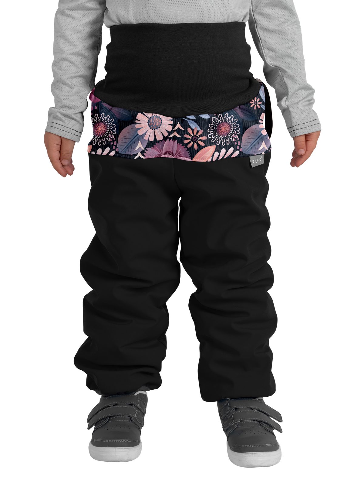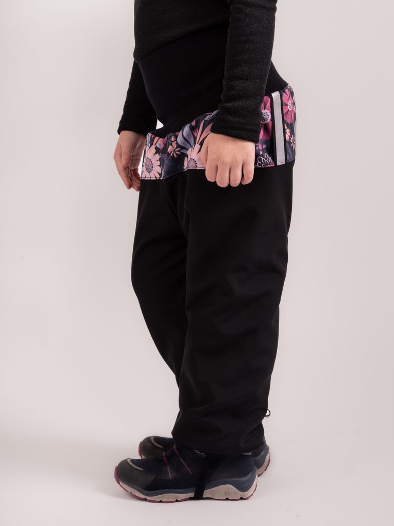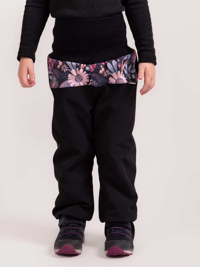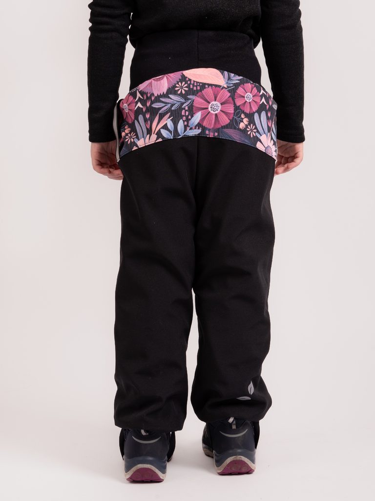 Unuo, Batolecí softshellové oteplovačky s beránkem Plus, Černá, Kouzelné květiny