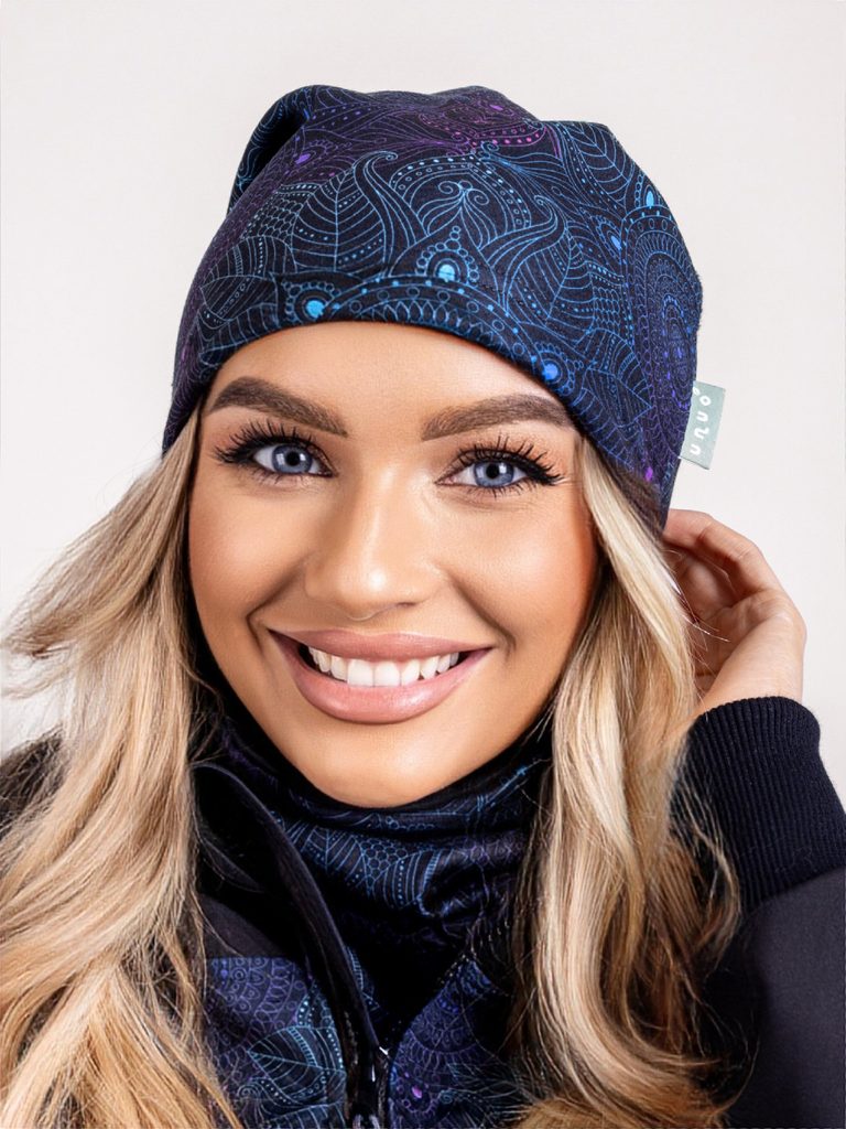 Unuo, Dámská čepice fleecová spadená, Temná mandala