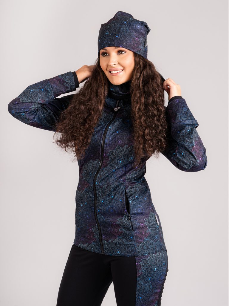 Unuo, Dámská softshellová bunda s fleecem pružná Alba, Temná mandala