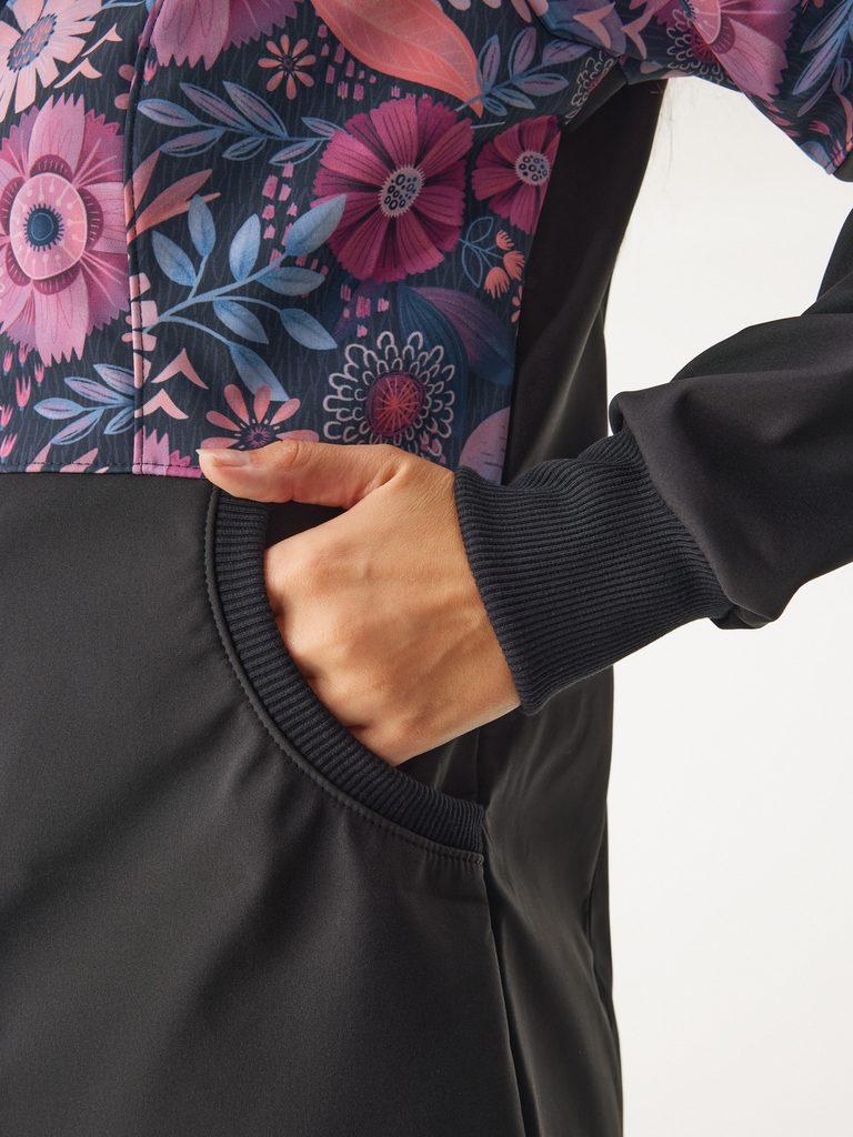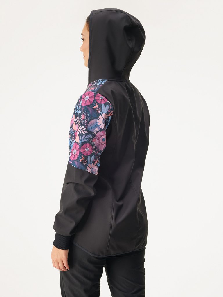 Unuo, Dámská softshellová bunda s fleecem Street, Černá, Kouzelné květiny