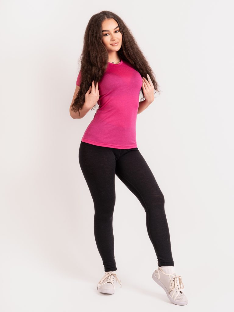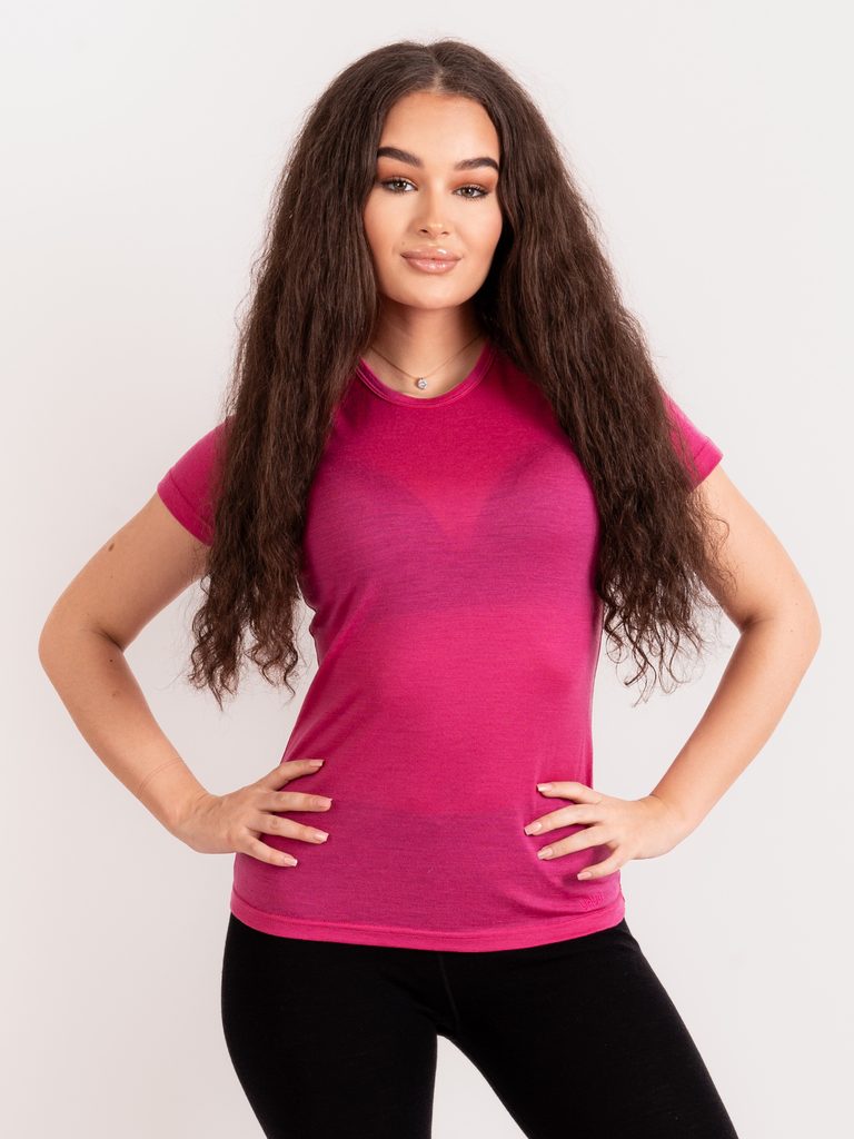 Unuo, Dámské merino triko s krátkým rukávem Nature, Fuchsiová