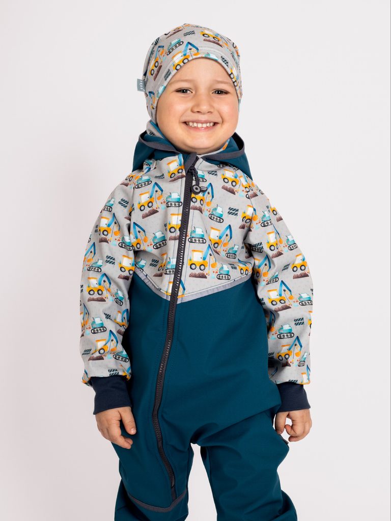 • Unuo, Dětská softshellová bunda s fleecem Basic, Kobaltová, Bagry