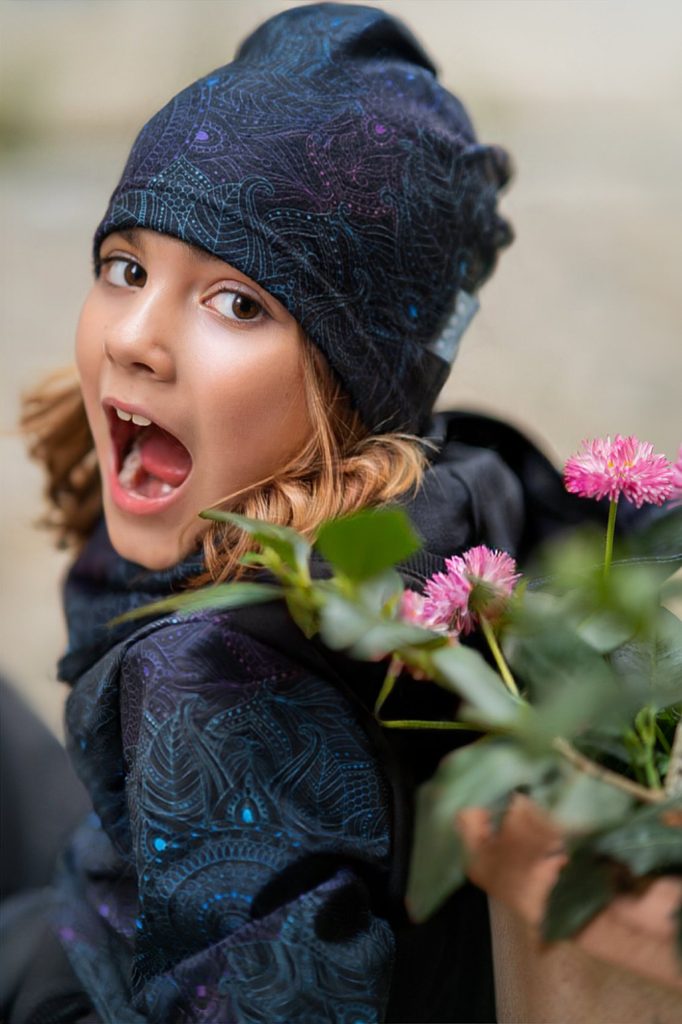 Unuo, Dětská čepice fleecová spadená, Temná mandala